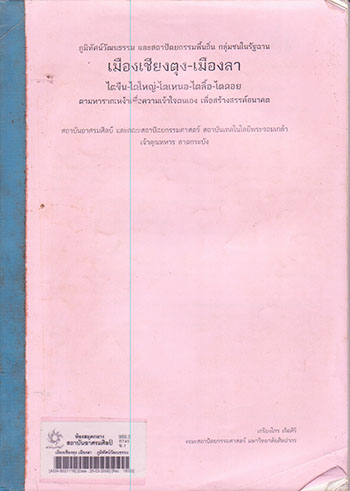 เมืองเชียงตุง เมืองลา : ภูมิทัศน์วัฒนธรรม และสถาปัตยกรรมพื้นถิ่น กลุ่มชนในรัฐฉาน / ไตขีน-ไตใหญ่ -ไตเหนอ-ไตลื้อ-ไตดอย ตามหารากเหง้าเพื่อความเข้าใจตนเอง เพื่อสร้างสรรค์อนาคต / เกรียงไกร เกิดศิริ.