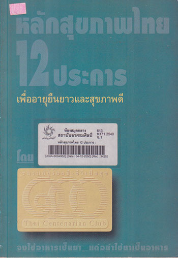 หลักสุขภาพไทย 12 ประการ : เพื่ออายุยืนยาวและสุขภาพดี / ชมรมอยู่ร้อยปี - ชีวีเป็นสุข