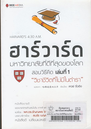 ฮาร์วาร์ด มหาวิทยาลัยที่ดีที่สุดของโลก : สอนวิธีคิด = Harvard s 4:30 / เหวย์ ซิ่วอิง เขียน ; ชํญญพร จาวะลา